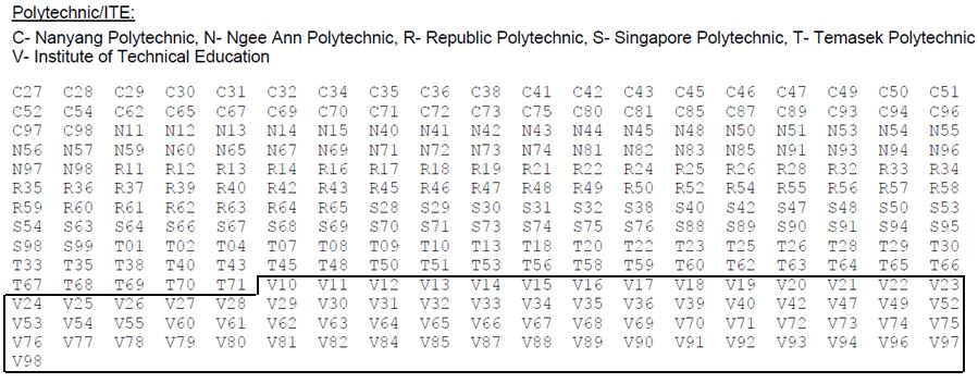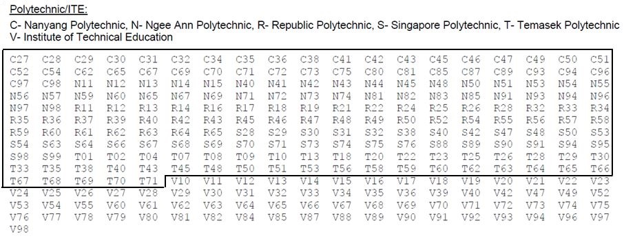 This section lists polytechnic courses for which you meet the minimum entry requirements. Course codes start with C, N, R, S or T (representing different polytechnics), followed by two numbers: