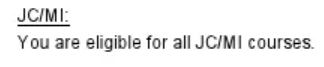 If you meet the admission criteria for JC and MI, your Form A will state that you are eligible to apply for all JC and MI courses as follows: