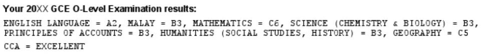 - O-Level subjects and the grades used to calculate your aggregate scores