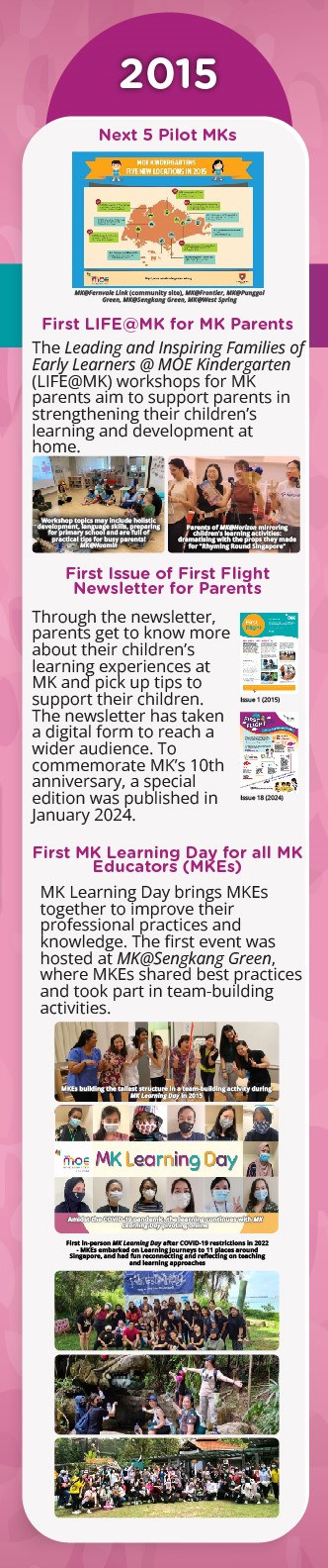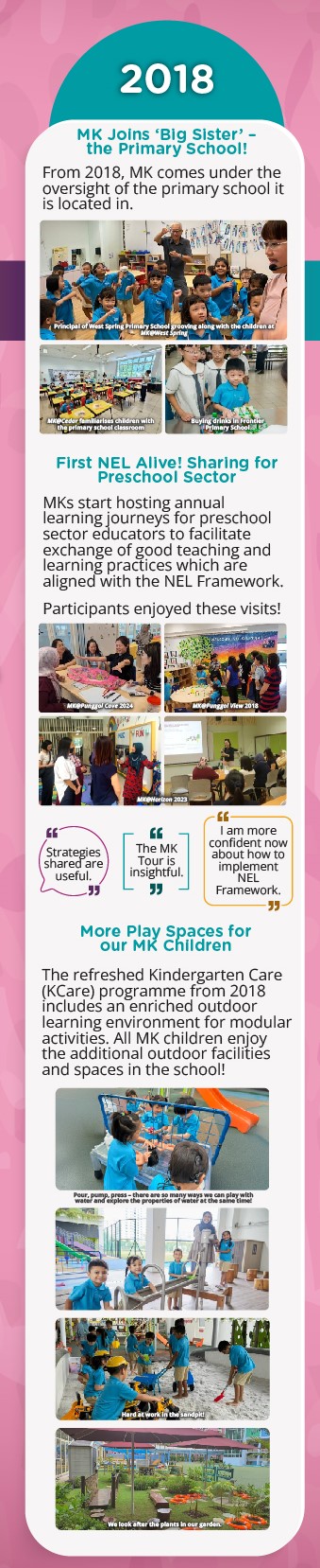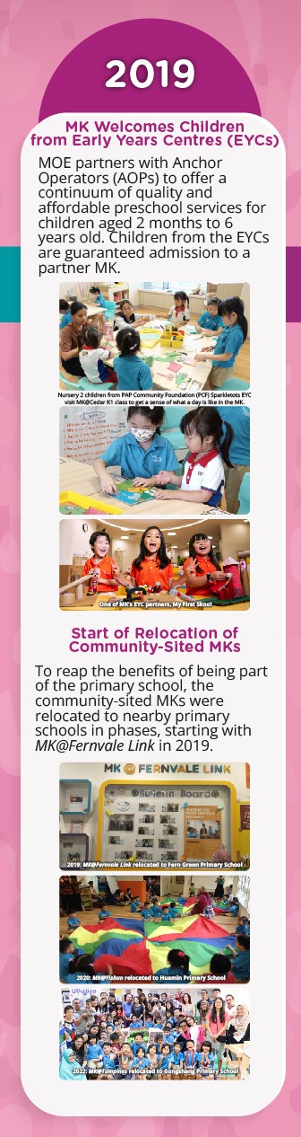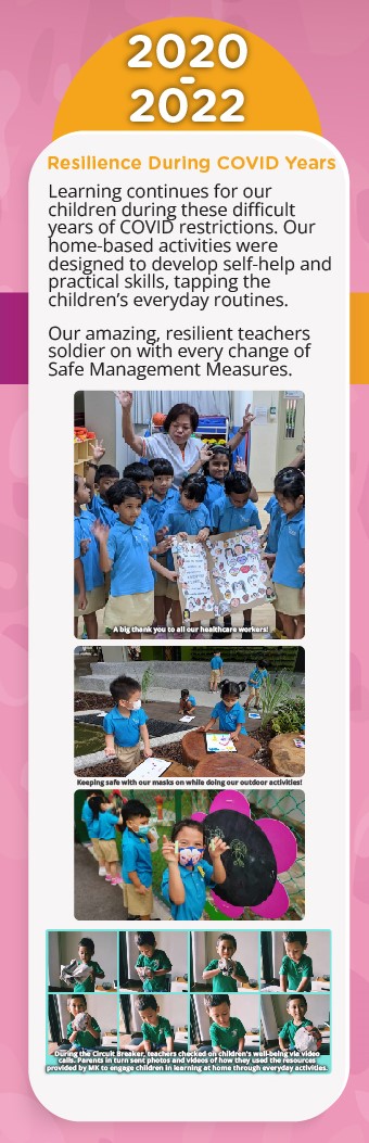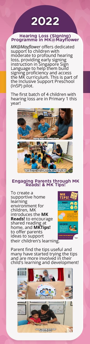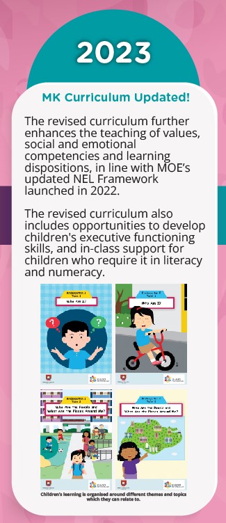 MK started in 2014 so that more 5 to 6-year-old children can access quality preschool education in Singapore. MK shares good teaching and learning practices and resources with the preschool sector, striving to play a key role in improving the quality of Singapore’s preschool education.