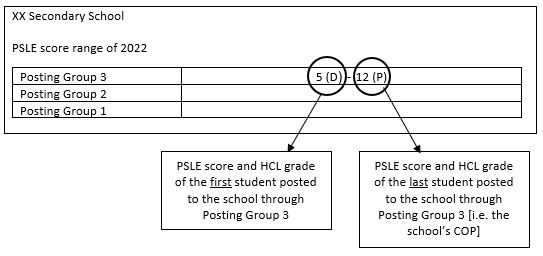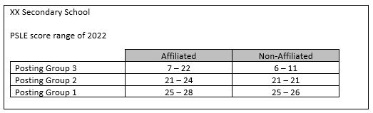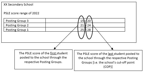 In the example above, the PSLE score of the first student (i.e. student with the best PSLE score) admitted through Posting Group 1, 2 or 3 in this school via last year’s S1 posting process was 25, 21 and 15, respectively.