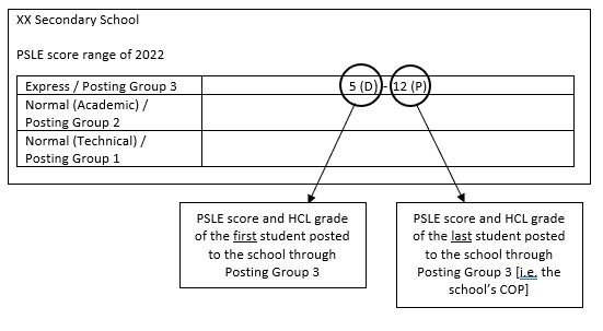 This means that: A student with a PSLE score of 11 and better, and did not take HCL would have been admitted, as 11 is a better PSLE score than the COP of 12 (P). However, a student with a PSLE score of 12 and did not take HCL would not be able to enter the school as the COP is better than the student’s score.